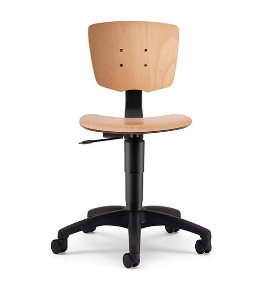 Sièges et tabourets d’opération, avec assise et dossier en hêtre ou en polyuréthane. Socle à 5 branches en nylon, à gaz, avec roues ou pieds. Versions avec accoudoirs à design fermé ou avec design en « T » réglable en hauteur en nylon pour les modèles en polyuréthane. Support de connexion du dossier du siège en métal. Egalement disponible en version tabouret avec repose-pieds réglable. Des versions pivotantes avec vérin à gaz et un mécanisme d’inclinaison du dossier Simple-Line sont disponibles. Les tabourets pivotants sont uniquement des tabourets avec vérin à gaz. Tous les modèles avec dossier sont équipés d’un réglage de la hauteur du dossier.