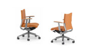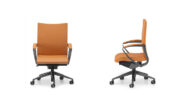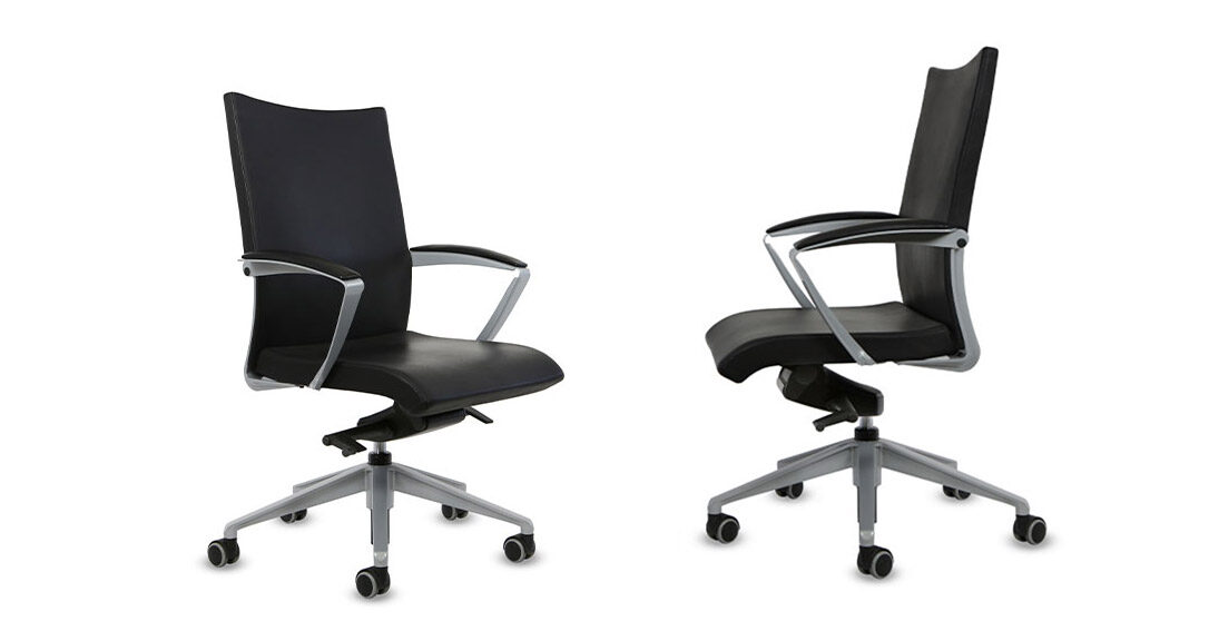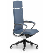 Swivel seating with upholstered seat and back. Available three heights backs versions and models with adjustable head rest. Aluminum painted 5 star base, gas lift, self-braking castors or feet. Available with T or closed arms or adjustable 2D-T arms (height and depth). Available stool with adjustable foot-rests. Available versions with tilt mechanism Compact Line or off-centre Dynamic, Syncro-Dynamic decentralized and synchronized mechanism. All mechanism are equipped with multi-stop positions and anti-shock system. Available sled chair and armchair.