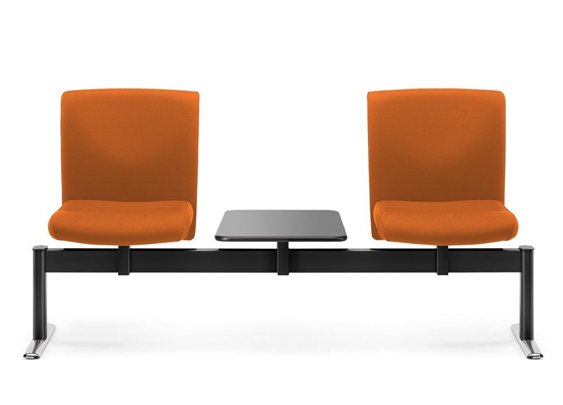 Armchairs with upholstered seat and back, metal painted our legs and sled frames. Modular beam seating, with two or more places, metal painted structure with T legs. Swivel seating with T arms or closed contour arms or without arms.